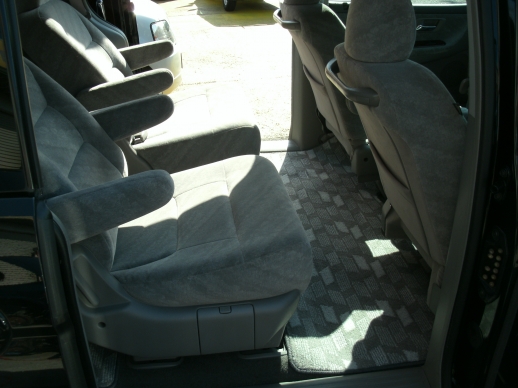 人気の後期型ブラック! 5速ATなので高速道路も静かで快適です! 燃費も悪くありませんよ! Wエアバック、サイドエアバック! ABS! 純正ナビ、CD、MD、ETC! 純正HIDヘッドライト! 社外AW! 両側電動スライドドア! セカンドシートは取り外しが可能です! 室内広々ビッグワゴンはいかがですか?